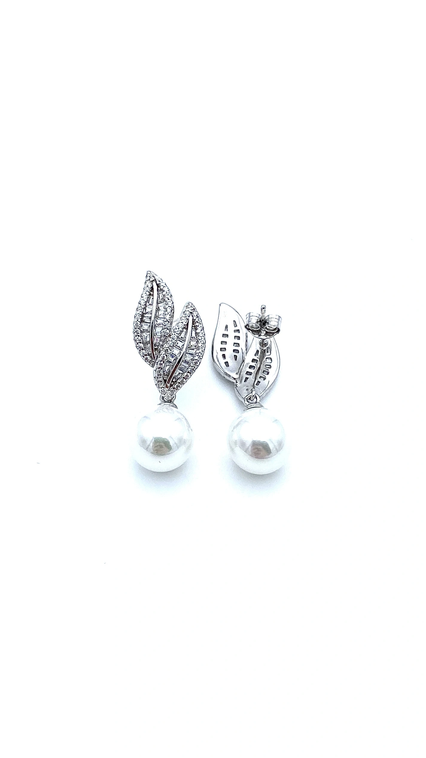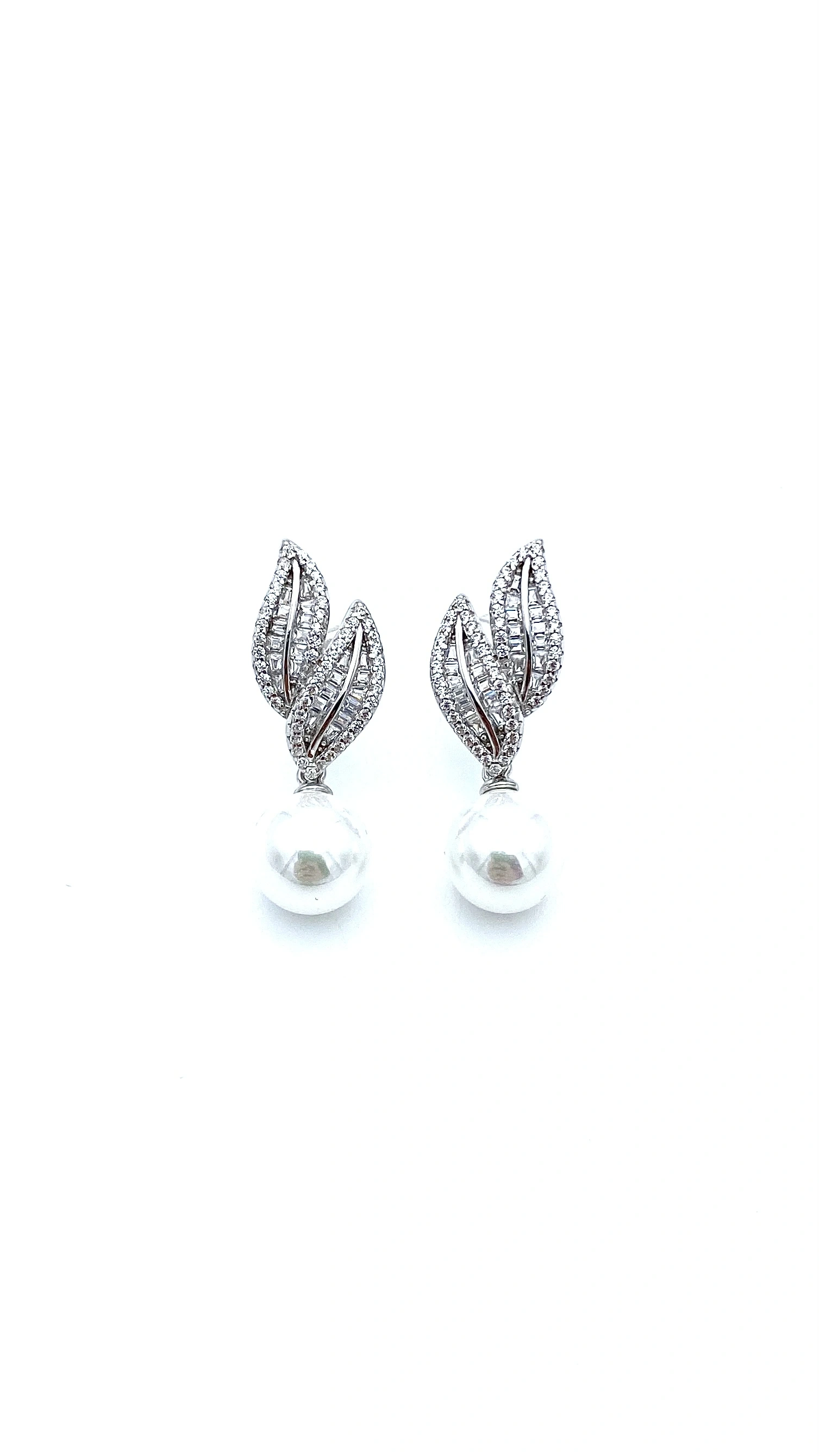 Baget Yaprak Duo İnci KüpeBaget Yaprak Duo İnci Küpe