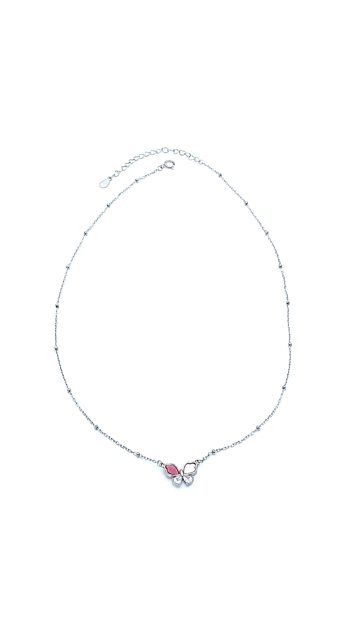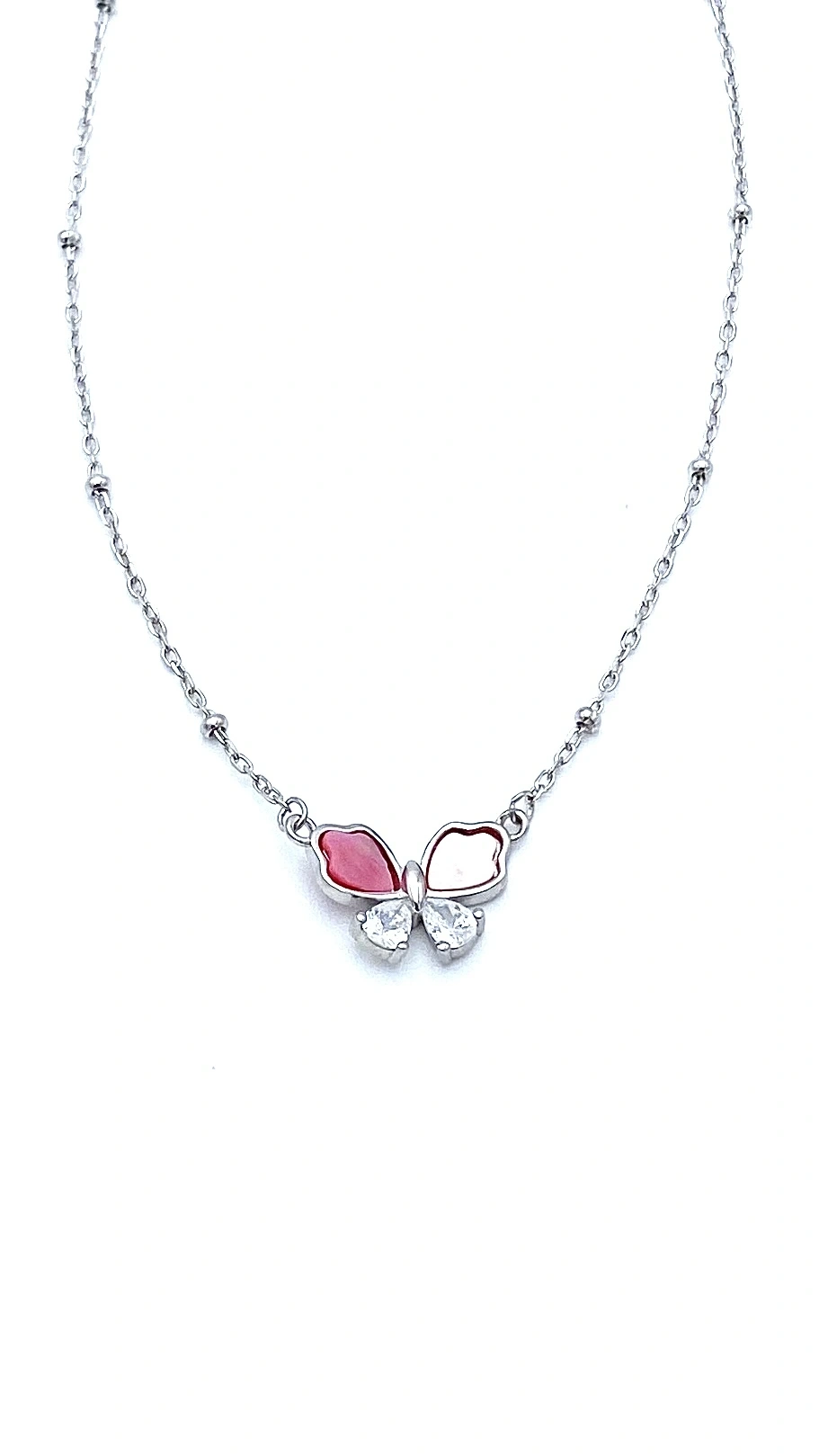 Damla Taşlı Pembe Sedef Kelebek Kolye