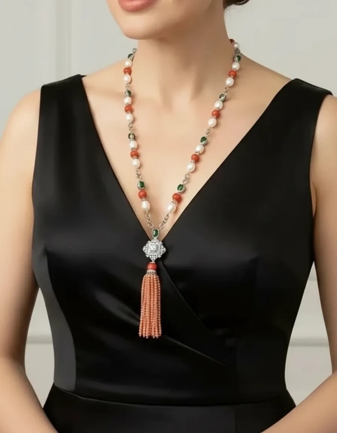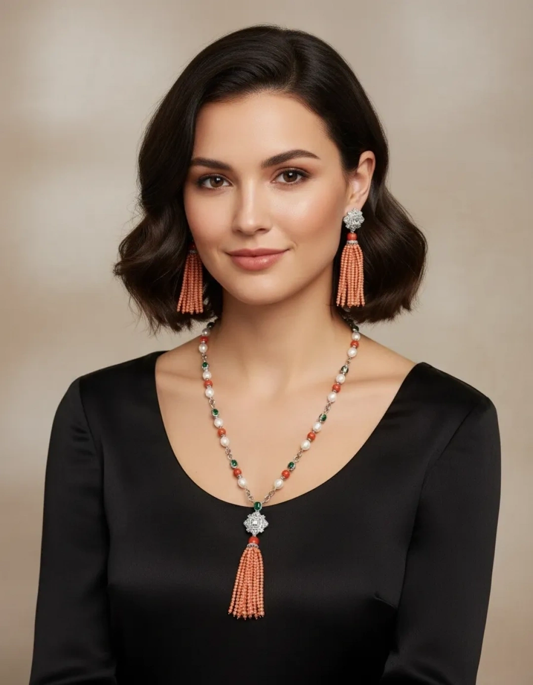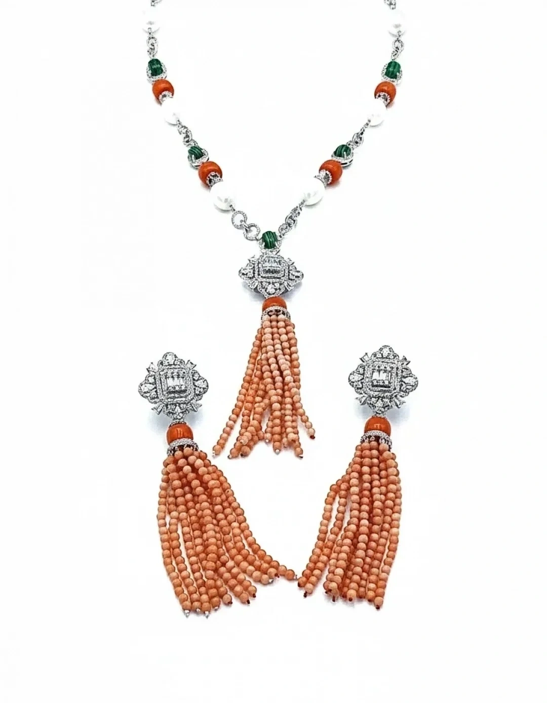 İnci ve Mercan Taşlı Tasarım Kolye Küpe Set