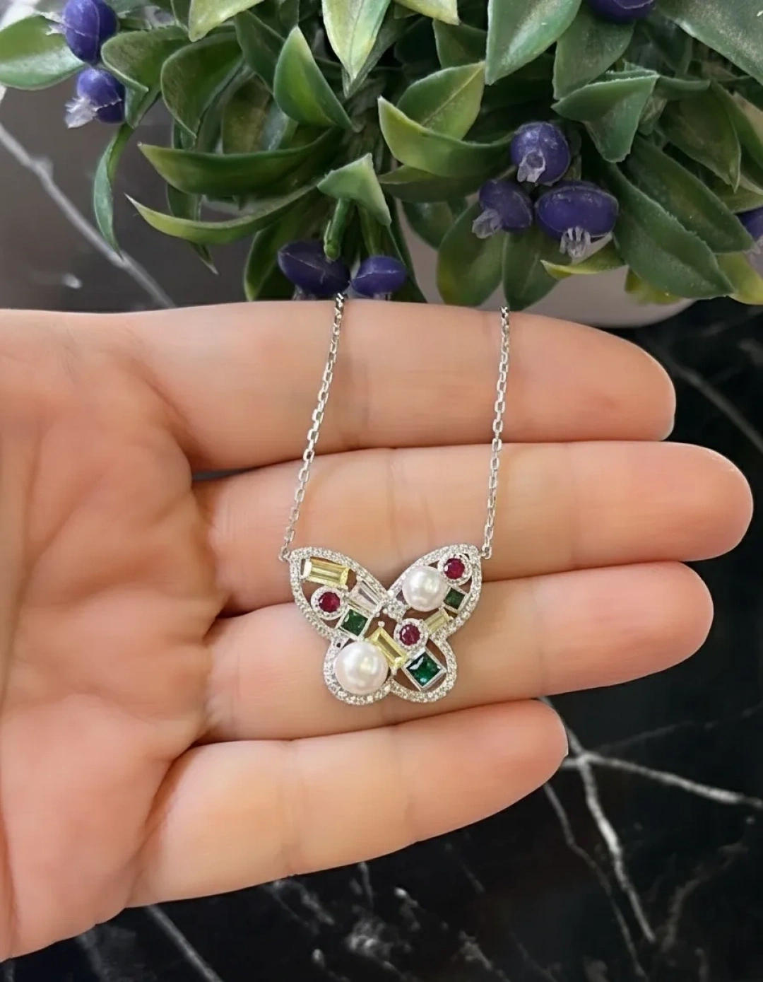 İncili Geo Taşlı Kelebek Kolyeİncili Geo Taşlı Kelebek Kolyeİncili Geo Taşlı Kelebek Kolye