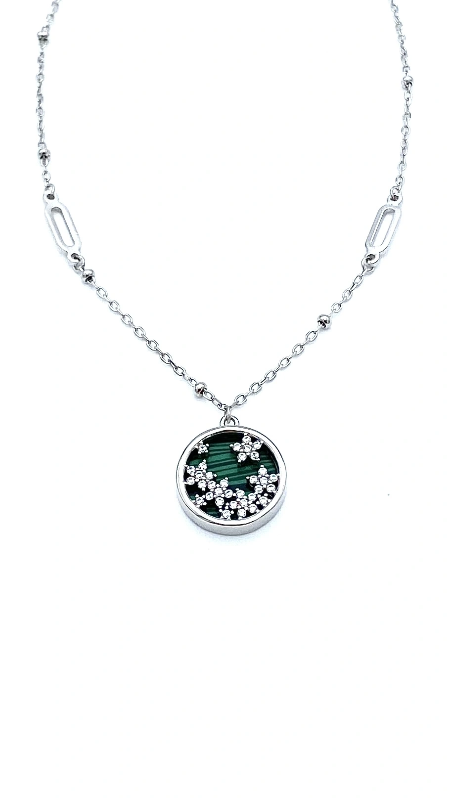Malahit Madalyon Çiçek KolyeMalahit Madalyon Çiçek Kolye