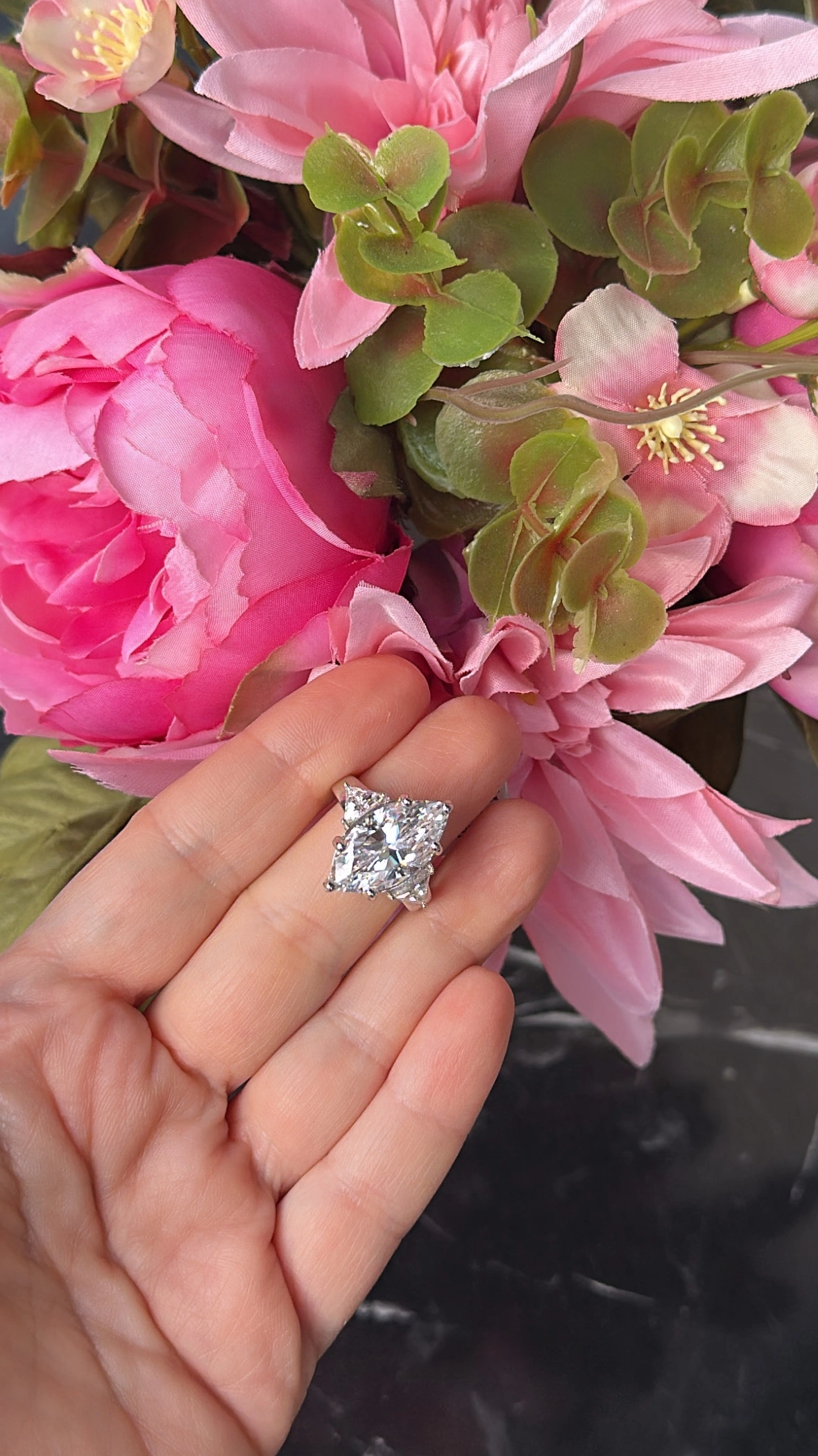 Mozanit 8ct Markiz Tria Yüzük