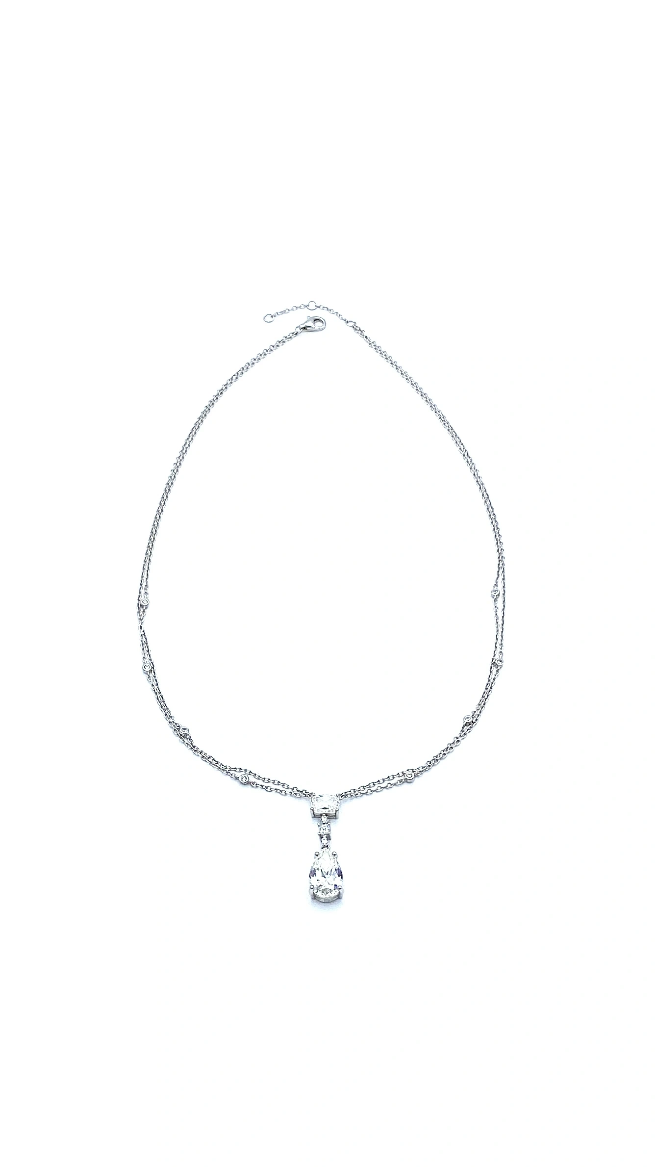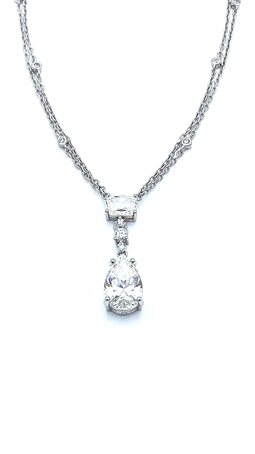 Mozanit Damla Oval Çift Zincir KolyeMozanit Damla Oval Çift Zincir Kolye