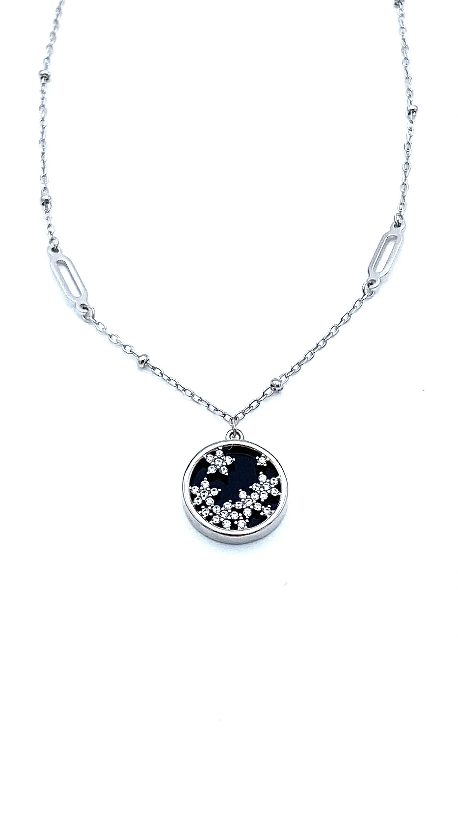 Onyx Madalyon Çiçek Kolye