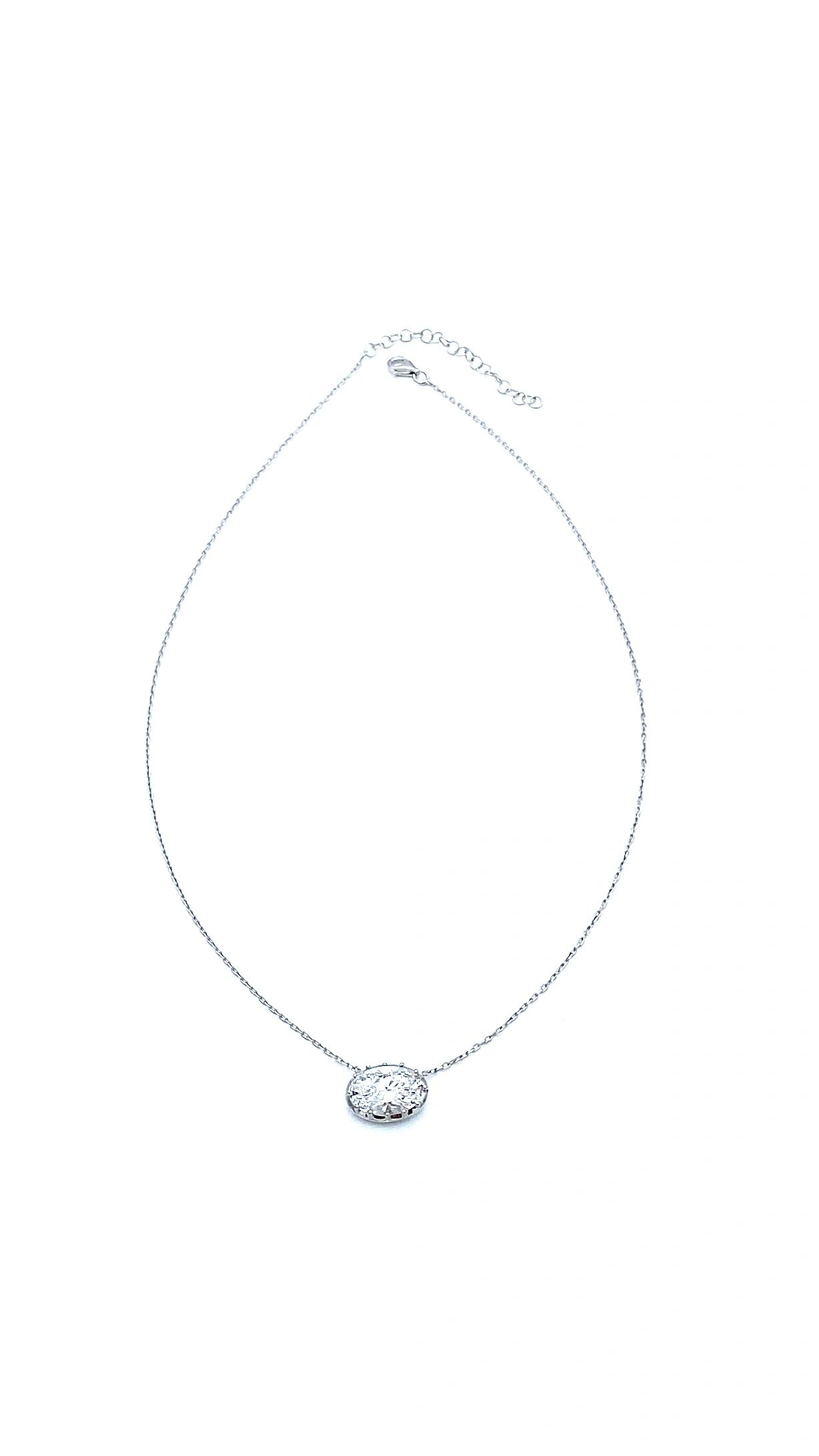 Oval Tektaş Tırnaklı KolyeOval Tektaş Tırnaklı Kolye
