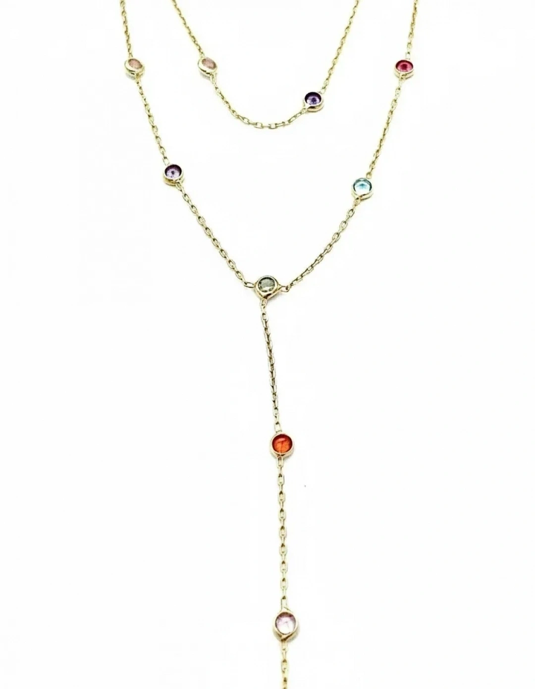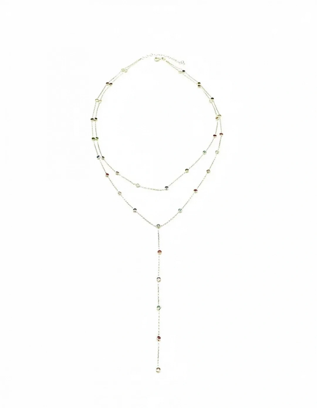 Rainbow Çift Sıra Gömme Taş Y KolyeRainbow Çift Sıra Gömme Taş Y Kolye