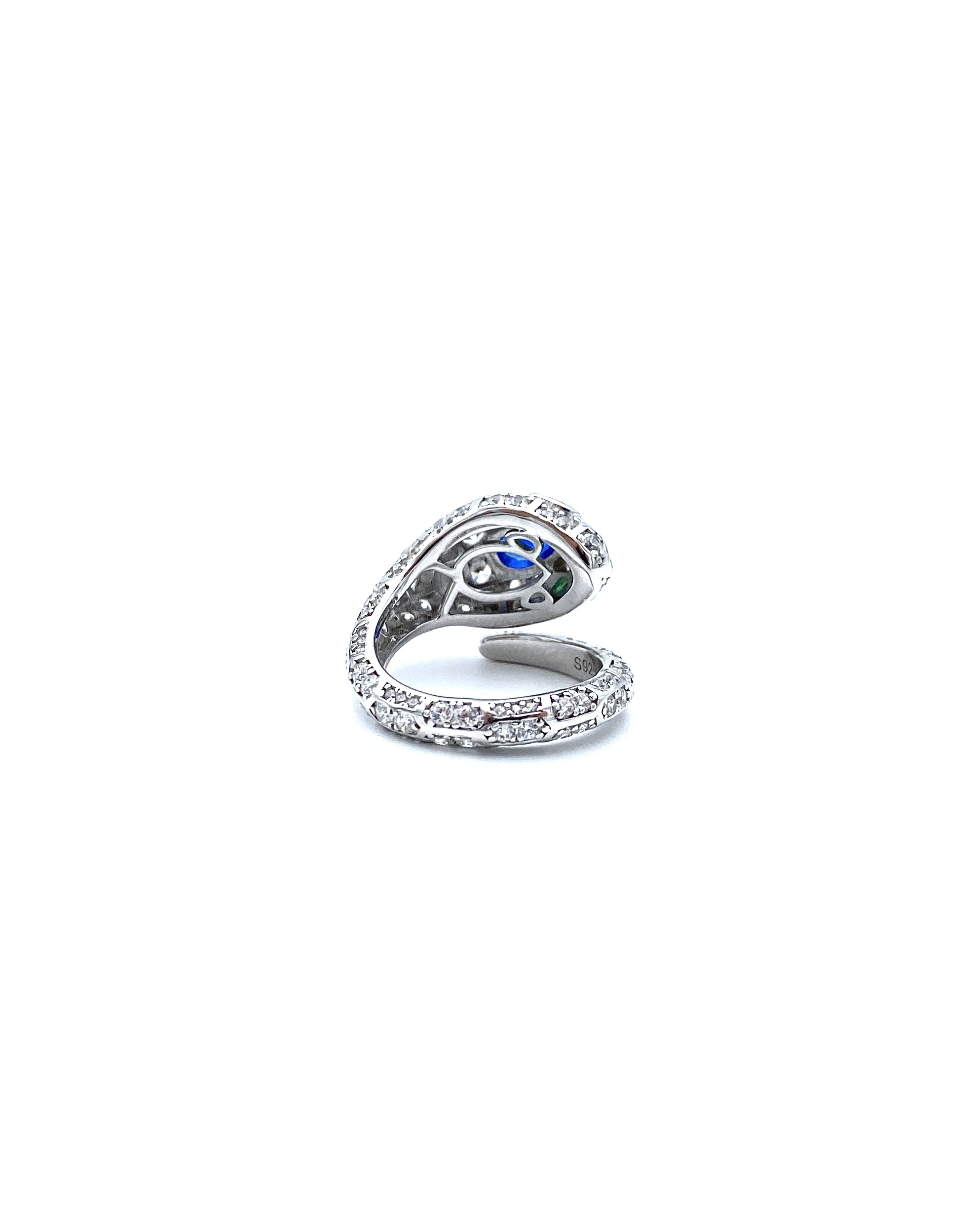Safir Zümrüt Yılan Full Taşlı Yüzük