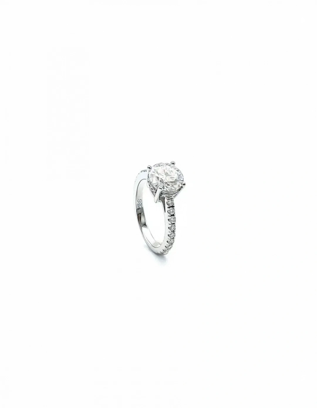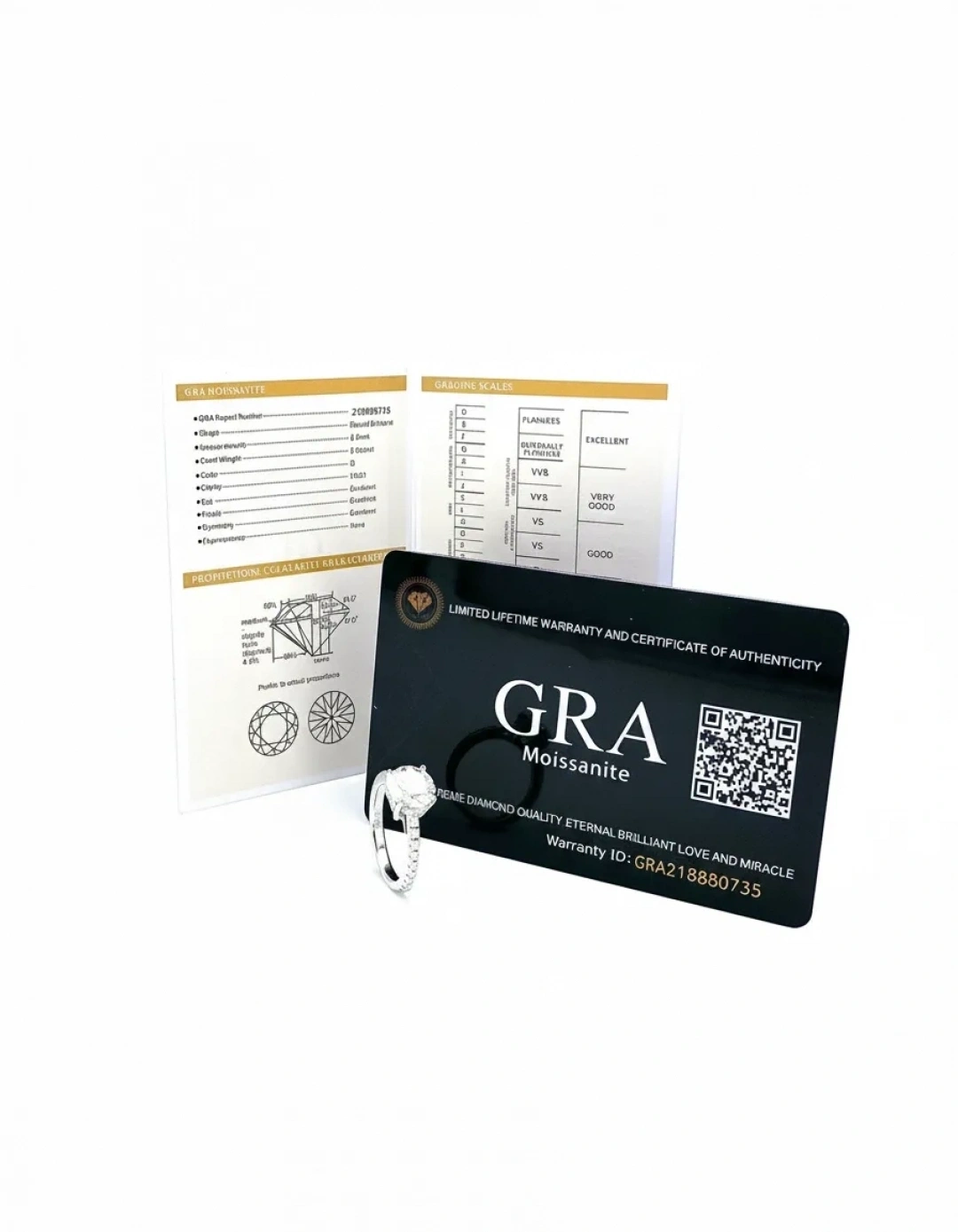 Sertifikalı Mozanit 2ct Yanları Taşlı Tektaş Yüzük