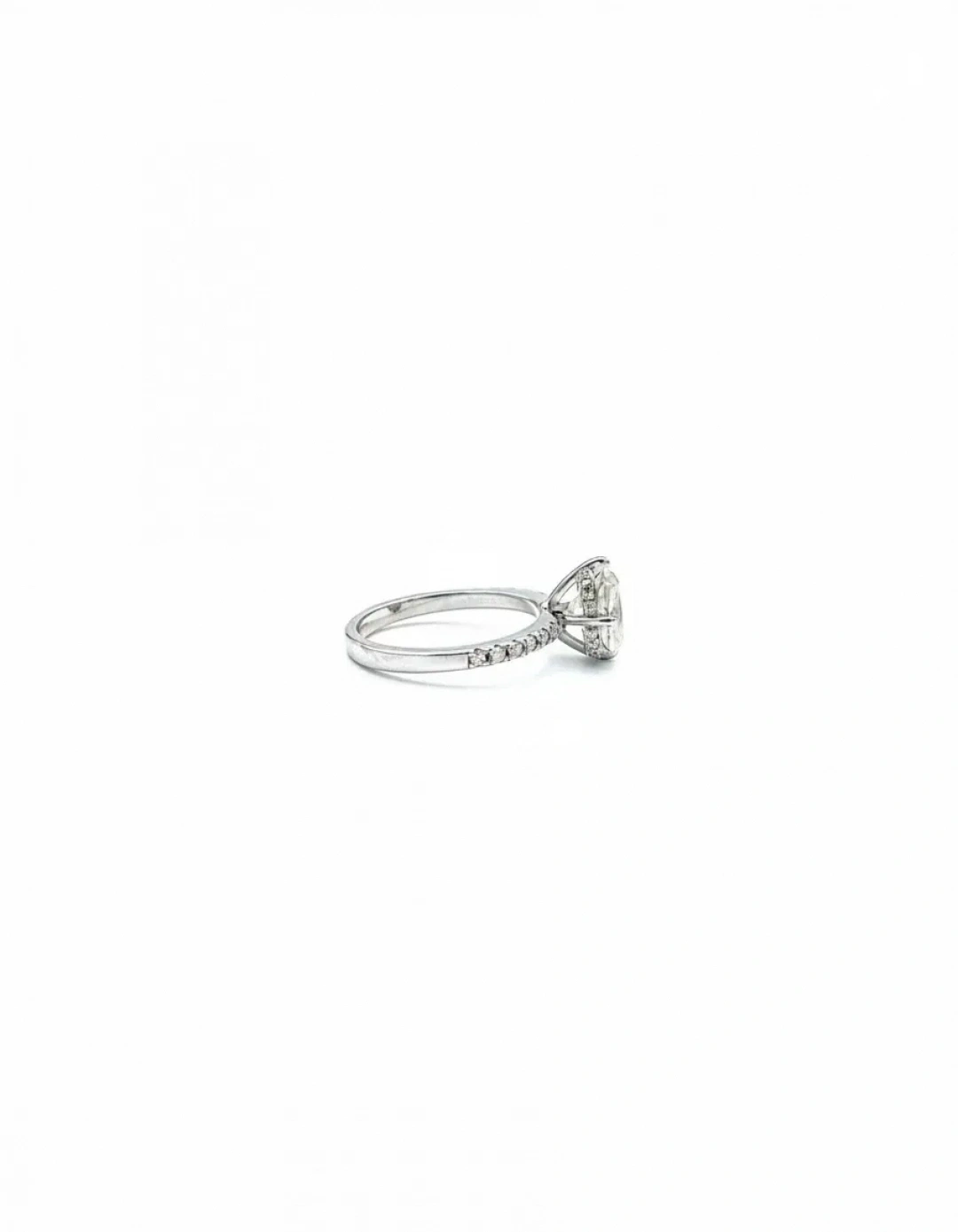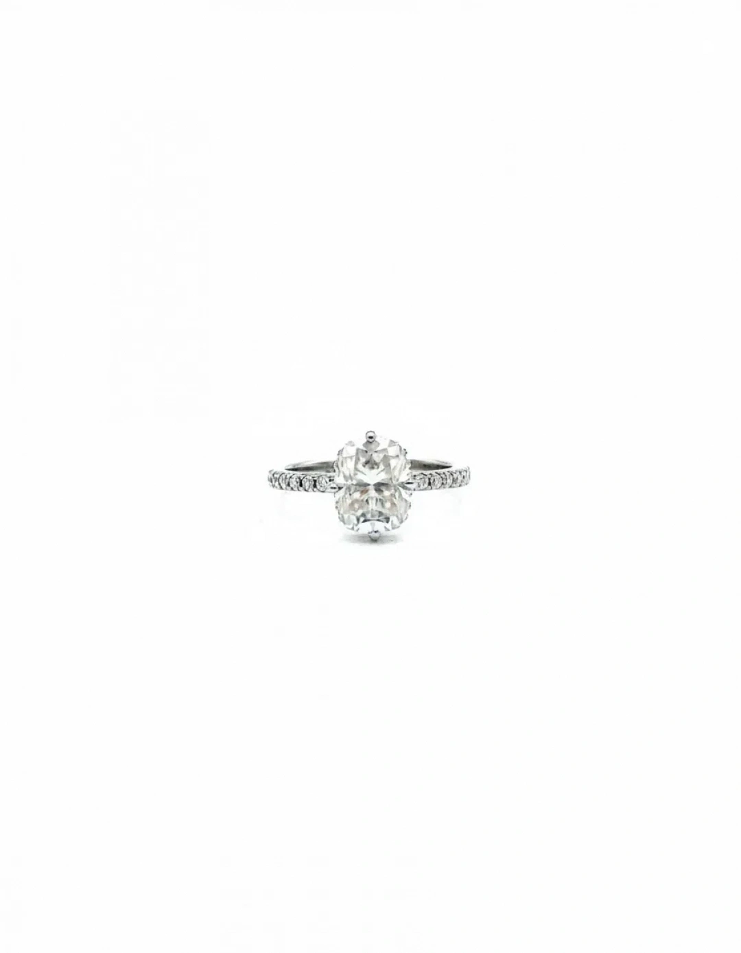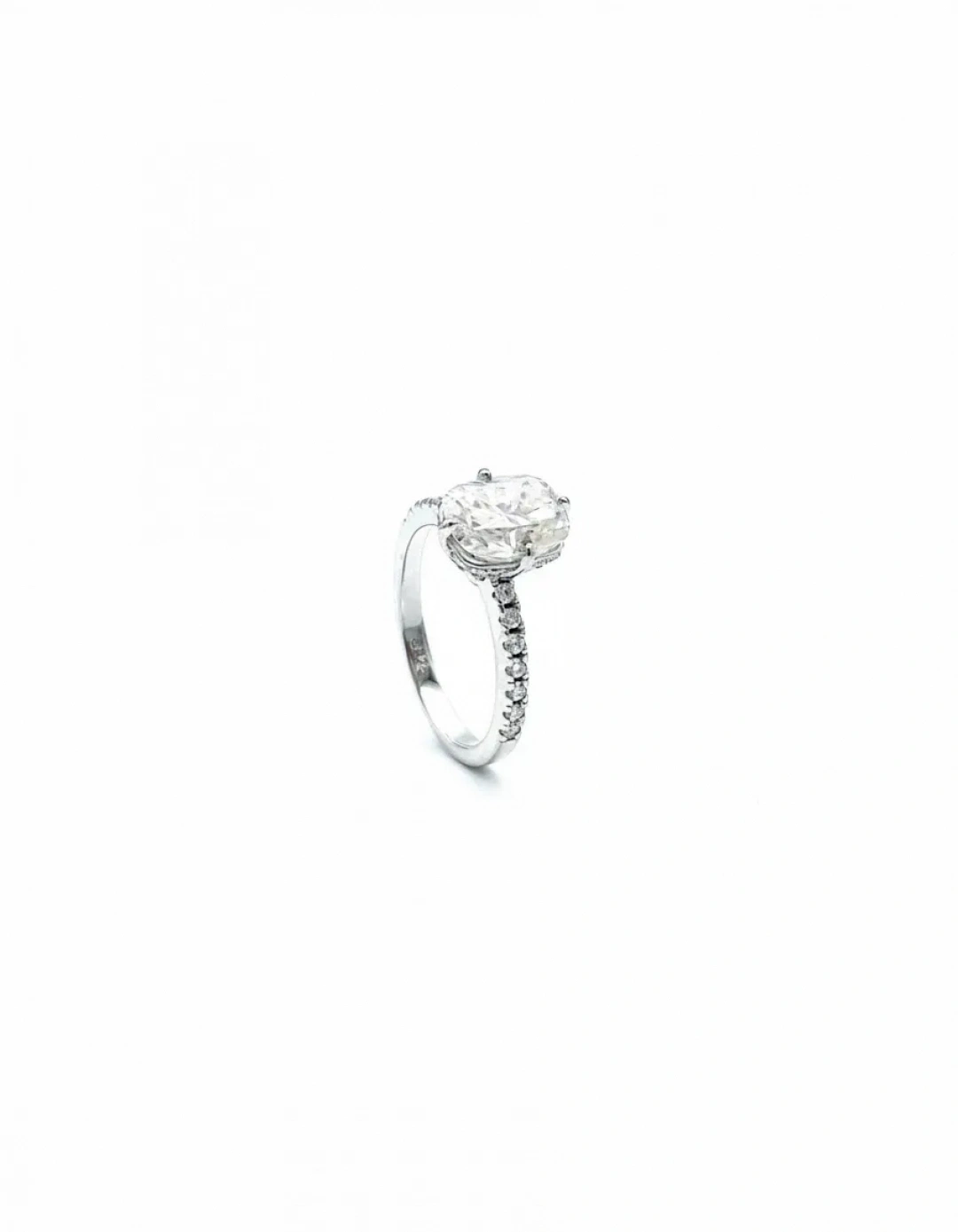 Sertifikalı Mozanit Oval Taşlı Yanları Taşlı Tektaş Yüzük