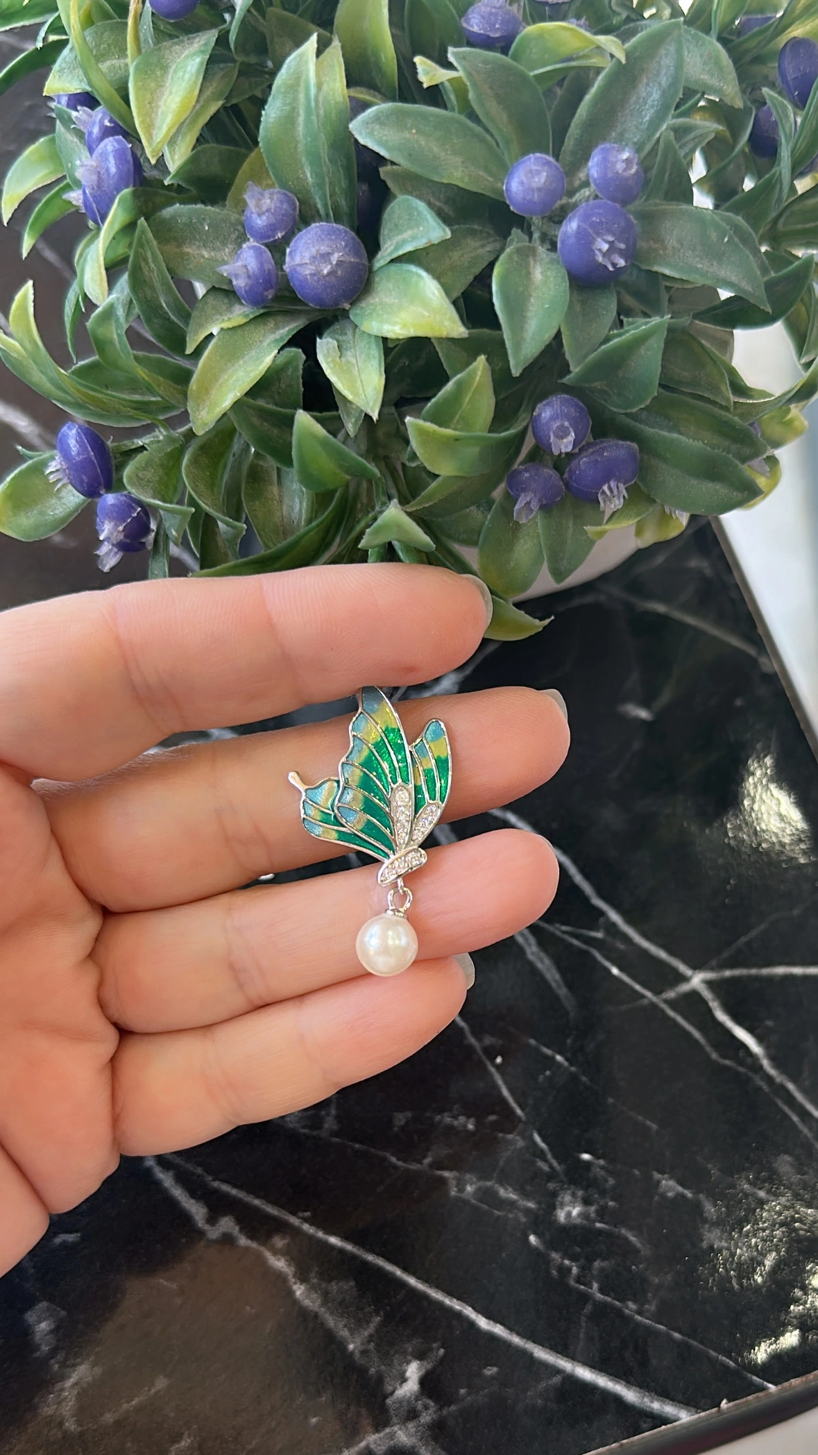 Yeşil Mineli İncili Kelebek Kolye Ucu